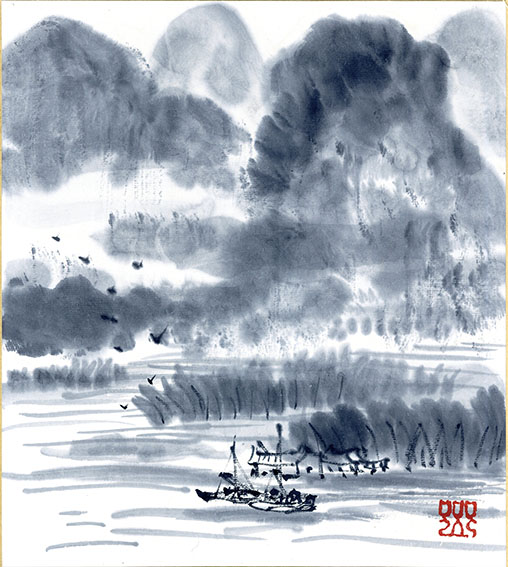 古沢岩美色紙「秋山」