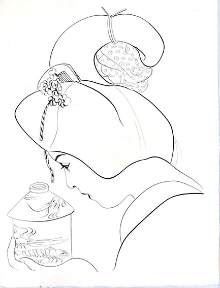 藤田嗣治版画「お梅さん三度目の青春より」