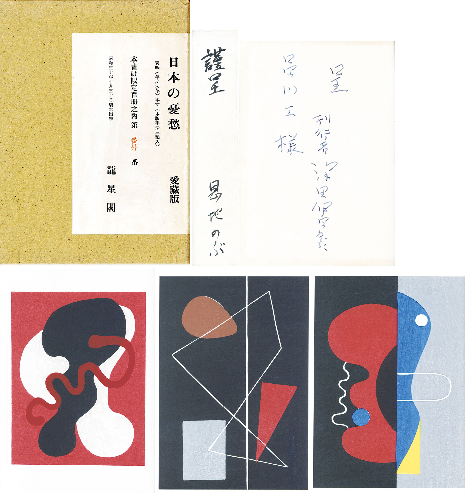 龍星閣 限100の番外 刊行者献呈署名 恩地のぶ署名 木版画3図 直筆訂正表付 二重函