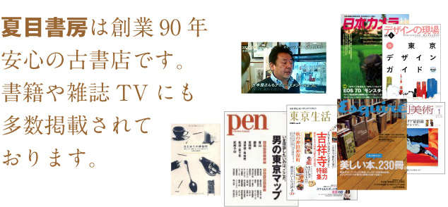 夏目書房は、古書古本が集まる神田神保町にあるボヘミアンズ・ギルドで営業している、創業90年の古書店(日本古書組合加盟店)です。